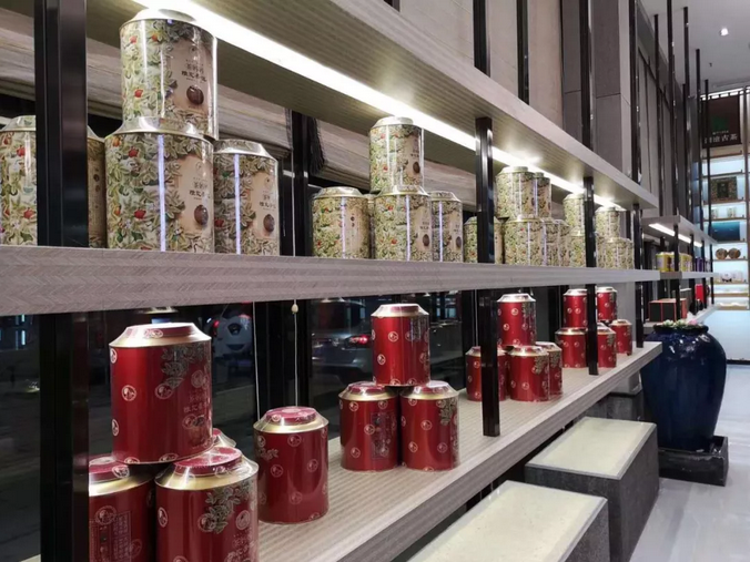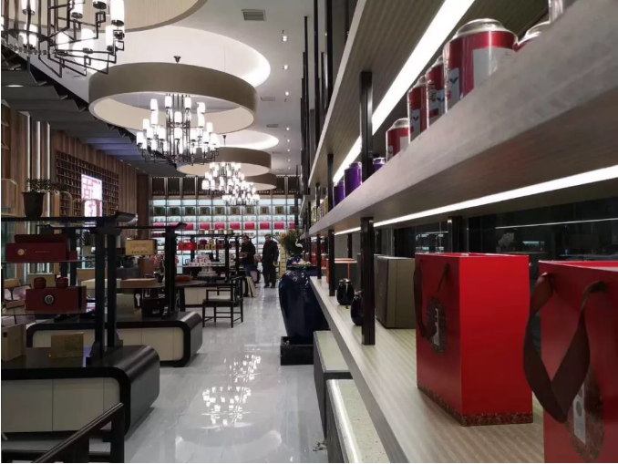 大堂內各種高端和名貴的靚茶擺放有序,琳瑯滿目。