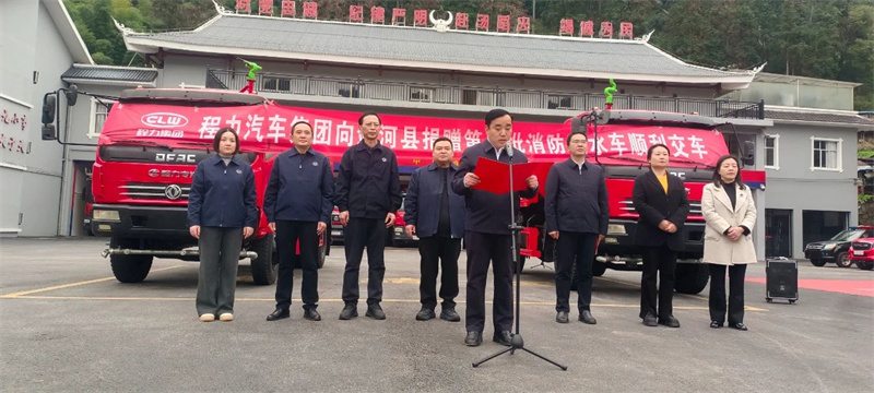 上圖:程力汽車集團承接的全國工商聯“萬企興萬村”共建鄉村振興對口幫扶縣----貴州省劍河縣,程力第二批捐贈消防灑水車現場,該縣縣委書記楊勝朝致答謝詞。