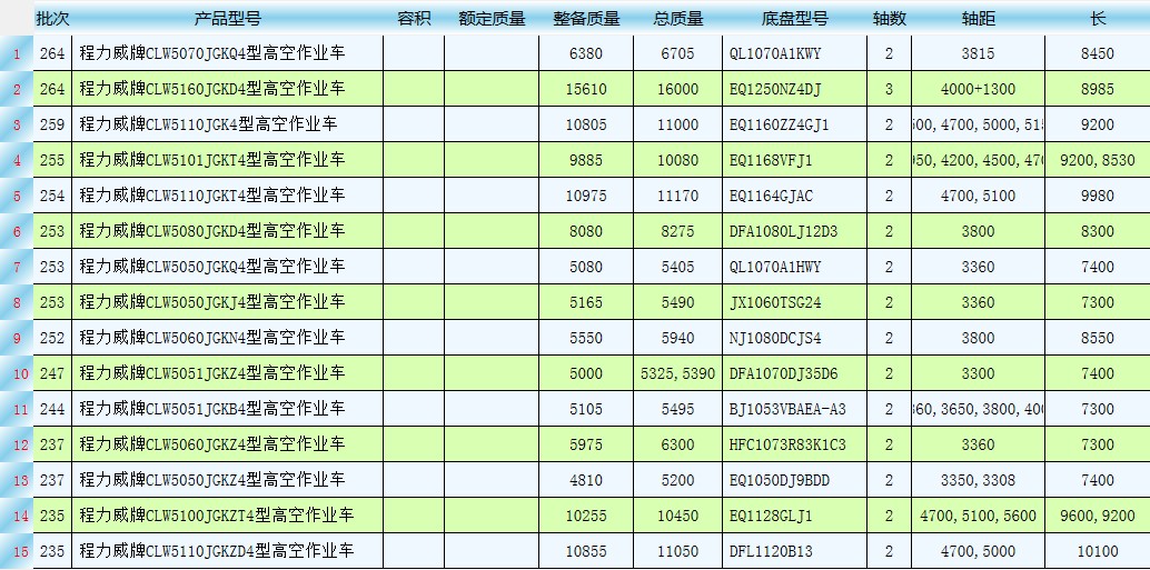 湖北程力高空作業(yè)車國(guó)四公告車型有哪些?