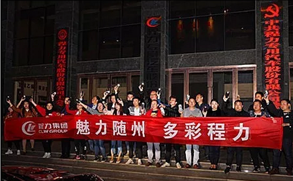 大概八點(diǎn)半的時(shí)候,CLW初見雛形,大家都進(jìn)自己的車內(nèi)試燈光和雙閃,希望在航拍的時(shí)候出現(xiàn)最佳效果。屏上顯示,這個(gè)C呢有點(diǎn)小,把弧度再稍微調(diào)大一點(diǎn),還差一輛呢,這時(shí),程總給了我們最大的支持,調(diào)動了自己的瑪莎拉蒂來壓軸,非誠勿擾的音樂想起,大BOSS在最后出場了。 一切準(zhǔn)備就緒,關(guān)廣場燈、車燈,一切恢復(fù)到夜的靜謐。隨著航拍指揮楊總的口令,大家逐一打開車燈、雙閃燈,23臺車主的齊心在此刻彰顯更明,也照亮了此時(shí)的夜。9點(diǎn)楊總表示航拍取景結(jié)束,大家下車在辦公樓前排好隊(duì)拉開橫幅,喊出了此次的活動口號:天王蓋地虎,程力最威武,確認(rèn)過眼神,都是程力人,哄亮的吶喊喊出了大家熱愛生活的心聲,也預(yù)示著此次活動驚艷的前奏已奏響。 我們程力人用最特殊的方式打響了新時(shí)代-互聯(lián)網(wǎng)新生代抖音APP展現(xiàn)自我的頭炮,后期各色的show time都會一一登場,讓我們拭目以待。 此次活動特別感謝湖北程力集團(tuán)公司高層及各員工的支持,還有自媒體大咖----隨州虎福瑞食品公司總經(jīng)理?xiàng)顨g、隨州抖音俱樂部會長胡夢圓女士的友情相助和鼎力支持。