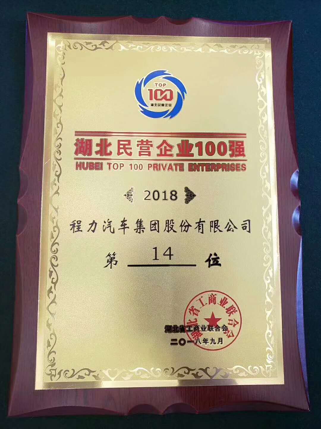 賀湖北程力汽車集團(tuán)榮譽(yù)排名湖北民營(yíng)制造業(yè)第四名
