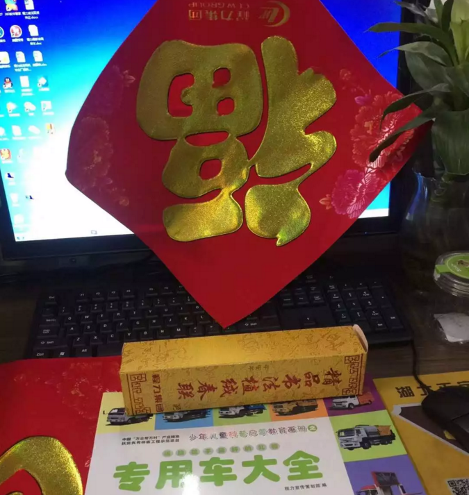 嗯嗯,這種植絨鎏金的高端對聯(lián)比我個(gè)子還高出一點(diǎn)點(diǎn)。 在精美禮品中,特別是被譽(yù)為專用汽車領(lǐng)域的葵花寶典《專汽大全》的出版發(fā)行,為培育及推廣隨州專汽區(qū)域品牌向全國性大品牌將起到積極的作用。程力公司主要領(lǐng)導(dǎo)及公司黨委還做出決定,把這份精美的禮物不僅作為新年賀禮送給員工及親人,還免費(fèi)贈(zèng)送給全市的幼兒園和兒童福利院,讓小朋友們從小就熱愛專汽、熱愛家鄉(xiāng),長大后做對社會(huì)對國家有用的棟梁之才。