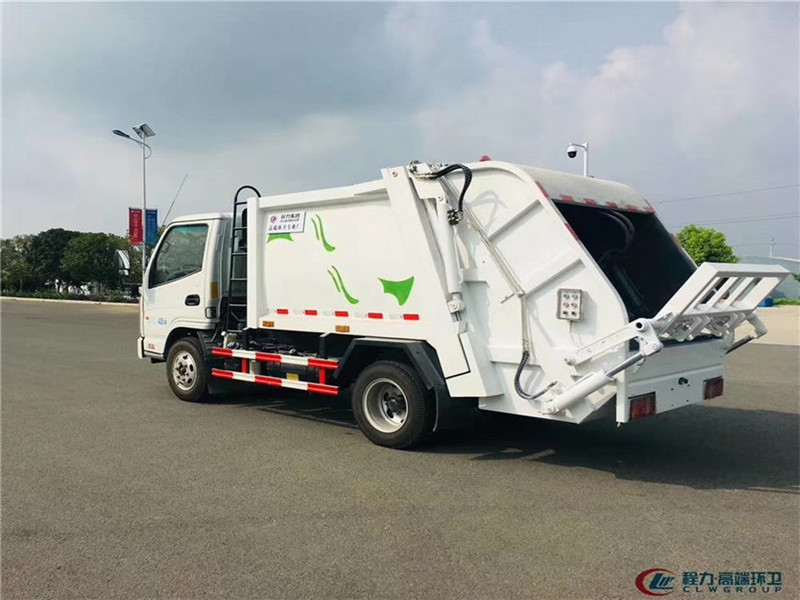 國六凱馬壓縮垃圾車與國五凱馬壓縮垃圾車區別:【藍牌4立方垃圾車,凱馬環衛垃圾車,4方后裝壓縮垃圾車配置說明】 ¤【底盤】:凱馬藍牌4立方壓縮垃圾車采用新款五十鈴級車身,軸距2800mm,云內102馬力國五發動機(D19TCIE1有環保),5檔變速箱,3.5噸后橋,6.50-16輪胎,氣剎,方向助力,ABS,原廠空調。 專用】:廂體材料為優質炭鋼,厚度為邊三底四,廂體容積為4立方米左右。由裝料機構、壓縮機構、卸料機構、油泵、油箱、控制閥等組成的液壓機構組成。裝料機構由支架、連桿機構、凸輪、掛鉤等組成,在油缸作用下,將垃圾桶內的垃圾自動翻轉倒入料斗內。 后翻轉機構選裝:1、掛塑料桶式翻轉機構;2、掛鐵桶式翻轉機構;3、擺臂式翻轉機構; 4、簸箕斗式翻轉機構。
