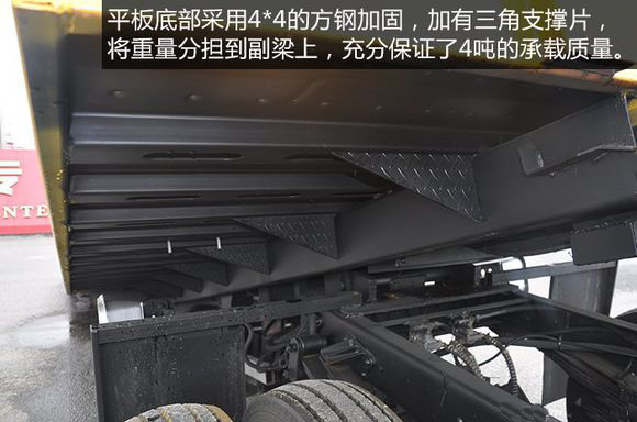 平板底部采用4*4的方鋼加固,加有三角支撐片,將重量分擔(dān)到副梁上,充分保證了4噸的承載質(zhì)量。