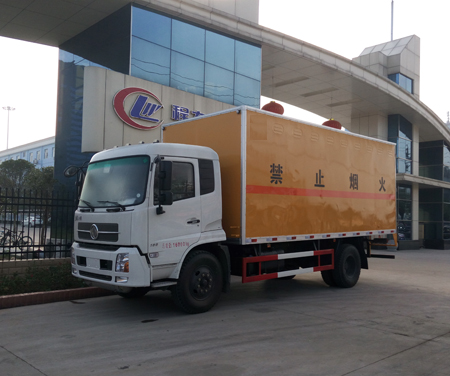 湖北程力國五天錦6.1米爆破器材運輸車(防暴車) 湖北程力生產的爆破器材運輸車防爆車均采用國際先進生產工藝,外形美觀,經久耐用。廂體采用可產生靜電屏蔽效應的冷扎鋼板,中間附以阻燃泡沫,內襯三合板,內飾高強度鋁合金,四層現代工藝復合而成。廂內安裝固定運載物的臥環,防燃煙霧報警器,門上安裝防盜報警器,前置防撞防靜電膠皮。底部是防爆鋼板上墊防靜電膠皮。整車型號:CLW5160XQYD5,底盤型號:DFL1160BX1V,上黃牌。根據不同配置需求,防爆車價格有所浮動,具體參數配置請致電湖北程力銷售部熱線:0722-7029866