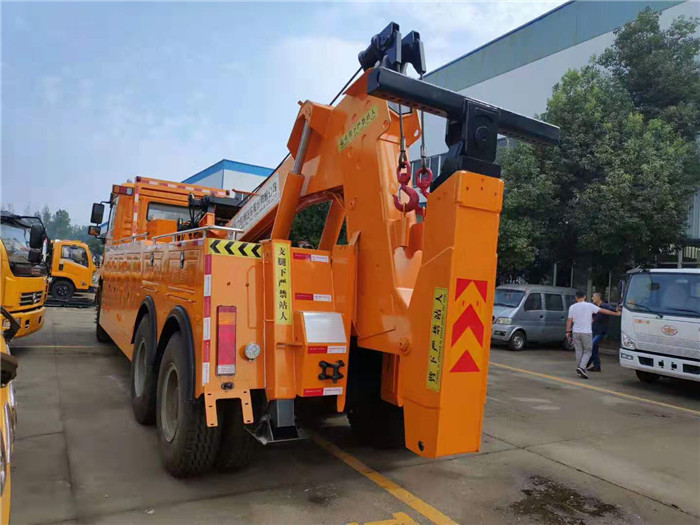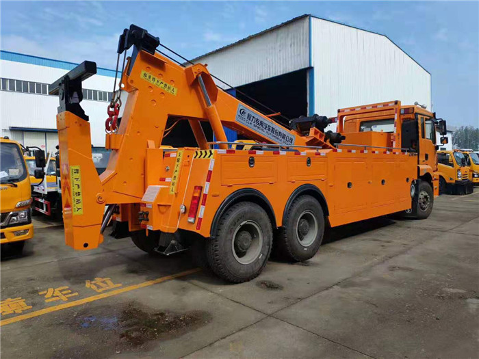 湖北程力國六陜汽德龍后雙橋重型清障車程力威牌CLW5322TQZS6型清障車配置: 陜汽德龍后雙橋拖吊聯體一拖一清障車配置: 采用濰柴336馬力,陜齒12擋變速箱,空調,斷氣剎,ABS,電動門窗,中控鎖,1100R20鋼絲胎。 20噸聯體式上裝,進口閥,二節(jié)式六邊型吊臂,三節(jié)托臂,分體式車廂,雙側聯動操作裝置,,兩個十噸液壓卷揚,四十五米鋼絲繩,直徑18MM,配四套鋼叉,一套拖叉套,一套鋼板吊耳拖叉,一套抱胎裝置,輔助燈一套,輔助氣管總成一套,捆綁鏈條兩根; 整車出具:底盤合格證、整車合格證、全國統(tǒng)一機動車上戶發(fā)票、隨車工具、車輛質保手冊、全國服務站點目錄等。 湖北程力國六陜汽德龍后雙橋重型清障車程力威牌CLW5322TQZS6型清障車多方位圖片: