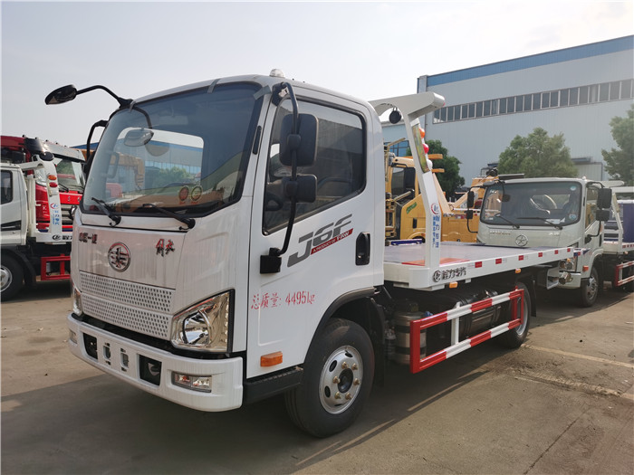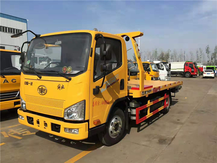 國六解放虎v藍牌一拖二清障車配置: 國六錫柴130馬力發動機,3300軸距,萬里揚6擋變速箱,原裝空調,電動玻璃,定速巡航,ABS,700R16鋼絲胎! 采用半落地式上裝,平板長度4.2米,寬2.3米,平板采用新型一次性成型帶孔沖壓板或4個厚花紋板,尾板可選用翻轉板或新款抽拉式尾板,尾板長1.2米,3噸上裝,配液壓絞盤4噸,21米鋼絲繩,雙側聯動操作,配輔助輪小車一對,方形套筒一對,綁帶4條。 整車出具:底盤合格證、整車合格證、全國統一機動車發票、隨車工具,車輛質保手冊、全國服務站點目錄等。