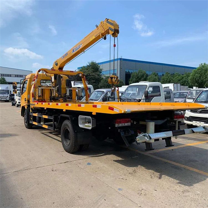 國六多利卡帶吊清障車上裝配置:東風多利卡帶吊清障車,板長5.4米,寬2.35米,平板可采用新型一次性成型沖壓板或4個厚花紋板,可配2~4噸吊機,帶地板鉤,4噸上裝配4噸卷揚,隨車工具一套,2個輔助輪小車,L型抱胎架一對,4套捆綁帶,配黃色長排LED工程警燈一套。我公司清障車采用國外先進嫻熟產品技術、生產工藝,全進口密封件液壓件,加強型橫梁固定,增強了承載能力,拖車過程中性能更加穩定,我公司在全國設有售后服務站,并保證全國均可上戶。