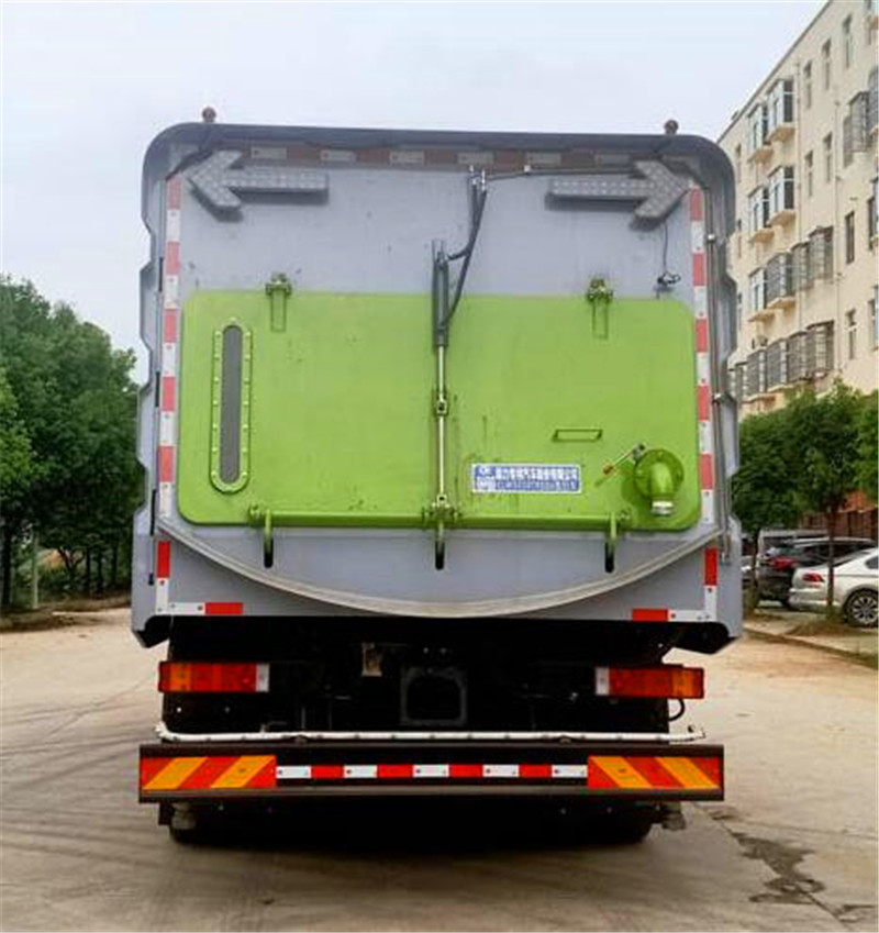東風天龍洗掃車垃圾箱采用單層不銹鋼結構,傾翻卸料,帶高壓位自潔裝置。自潔裝置可在垃圾箱卸料時幫助卸料,清洗垃圾箱內部。