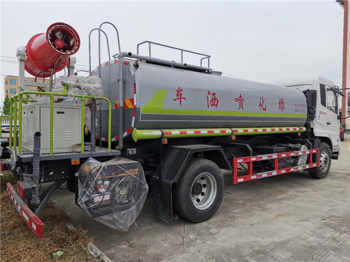 東風天錦12噸30米霧炮車亮點: 底盤配置:采用原裝東風天錦底盤,軸距4700或者5000,國六康明斯210馬力發(fā)動機,東風6檔變速箱,900R20鋼絲胎帶備胎,氣剎,斷氣剎,方向助力,離合助力,原裝空調,電動玻璃,中控鎖,東風原廠4通道ABS。改裝配置:采用4mm國標碳鋼板縱縫焊接一次卷制成型,罐內設防浪隔板防止水浪沖擊,有效容積12-14立方可選,配60/90大功率灑水泵,管道采用大口徑無縫鋼管+大口徑球閥,標配14米前沖,后灑側噴功能,35米平臺水炮,后平臺加裝30米霧炮機及8.5KW柴油專用副發(fā)電機。 霧炮機參數(shù):射程30米,風機電機3KW,水泵電機3KW,噴霧流量20L/min,工作壓力1.5-3.5MPa,霧粒度50-150微米,360°水平旋轉,-10~45°上下俯仰角度,手動+遙控控制,霧炮機尺寸:1300*700*1600mm 湖北程力國六東風天錦12方-14方綠化噴灑車|霧炮抑塵車|灑水車程力威牌CLW5161GPS6WL型綠化噴灑車CLW5180GPSE6型綠化噴灑車圖片價格: