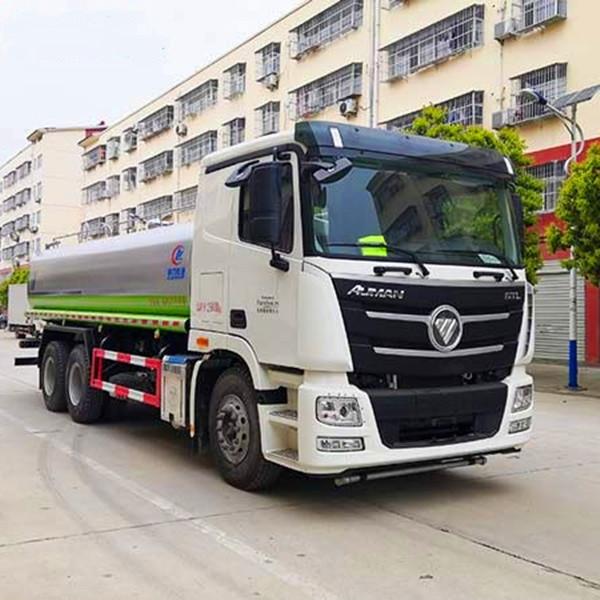 湖北程力國六歐曼后雙橋18-20方綠化噴灑車(灑水車)程力威牌CLW5250GPSBDP型綠化噴灑車廠家配置: 湖北程力國六福田歐曼GTL后雙橋20噸灑水車底盤配置:采用福田歐曼后雙橋原裝底盤,福田歐曼GTL豪華駕駛室,4400+1350mm軸距,搭載國六(國Ⅵ)東風康明斯260馬力柴油發動機,功率191kw,國六排放,陜齒法士特八檔變速箱,11.00R20鋼絲胎,前橋5T,后橋雙10T,方向助力,斷氣剎,排氣制動,原裝空調,行駛記錄儀,多媒體顯示屏,電動門窗,中控鎖,氣囊座椅,ABS。 湖北程力國六福田歐曼GTL后雙橋20方灑水車專用配置:罐體容積:18立方米,罐體鋼板為5mm碳鋼Q235材質專用容積板一次成型,罐內隔板具有防波作用,以減輕汽車行駛時罐體液體沖擊;配大功率專用灑水泵,泵可自吸自排;整車前沖、后灑、側噴、后平臺帶綠化灑水炮,灑水炮可全方位旋轉,可連續調成直沖狀、大雨、小雨、毛毛雨;前封頭帶水位計,后平臺主管路帶1寸澆花接口,后爬梯,帶1個消防接頭,帶1個自流閥,1個過濾裝置。