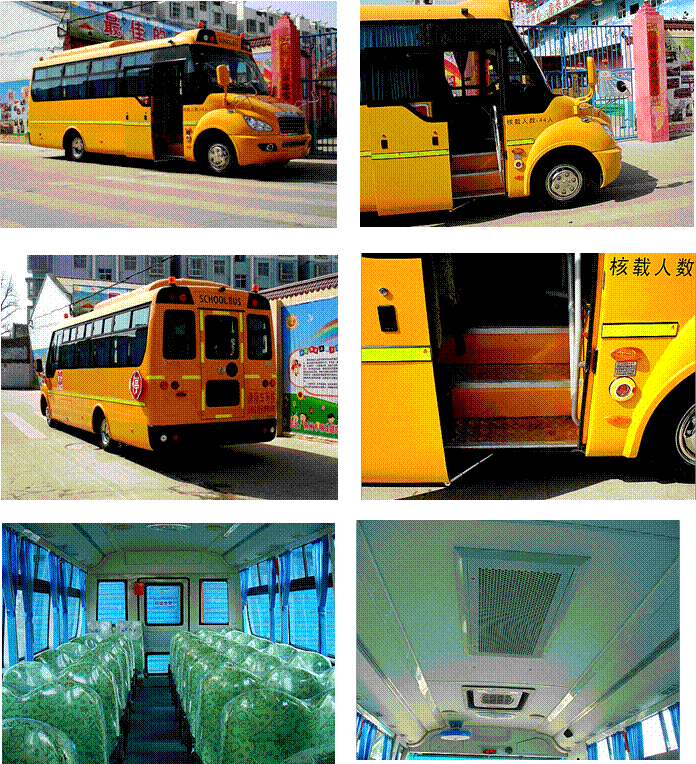 東風(fēng)24-45座園幼兒園校車(chē) 車(chē) 身: 空調(diào)內(nèi)飾、氣動(dòng)折疊門(mén)、車(chē)外應(yīng)急開(kāi)關(guān),左側(cè)安全門(mén),下粘接上推拉側(cè)窗,手動(dòng)倒車(chē)鏡,不銹鋼下視鏡、內(nèi)視鏡,安全衛(wèi)士監(jiān)控系統(tǒng)(硬盤(pán)錄像機(jī)+5探頭+倒車(chē)監(jiān)視)前組合燈具,后圓燈,4盞校車(chē)標(biāo)示燈,GPS行車(chē)記錄儀(含MP3收音機(jī))限速裝置,電瓶倉(cāng)門(mén),800天窗,45座(2+3)幼兒專(zhuān)用座椅(全車(chē)安全帶)/43座小學(xué)生座椅(配安全帶),整車(chē)普通漆、平地板(PVC地板革)無(wú)后行李倉(cāng),電、氣喇叭、電風(fēng)扇,電子鐘,小遮陽(yáng)簾,滅火器2個(gè)、隨車(chē)工具,上車(chē)扶手,校車(chē)護(hù)欄,醫(yī)療急救箱、電動(dòng)停車(chē)警示牌。